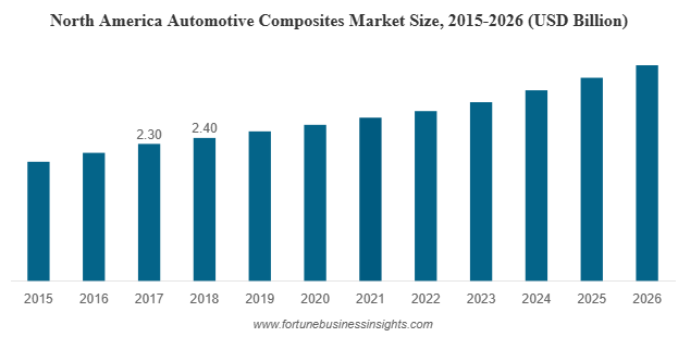 世界の自動車用複合材市場規模は、2018年に76億7,000万米ドルと評価され、2026年には135億米ドルに達すると予測されています。予測期間中は年平均成長率(CAGR)7.56%で成長します。北米は2018年に31.29%の市場シェアでトップの座を占めましたが、米国市場だけでも、軽量化への取り組みの増加と燃費向上への需要の高まりを背景に、2026年までに32億2,000万米ドルに達すると予想されています。