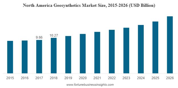 世界のジオシンセティックス市場は2018年に271億6,000万米ドルと評価され、2026年には452億5,000万米ドルに達し、予測期間中に6.6%の年平均成長率(CAGR)を記録すると予測されています。北米は、堅調なインフラ投資に牽引され、2018年には37.81%のシェアで市場をリードしました。米国では、大規模建設およびインフラ開発プロジェクトへの政府支出の増加を背景に、市場は大幅な成長が見込まれ、2032年には45億6,000万米ドルに達すると予測されています。
